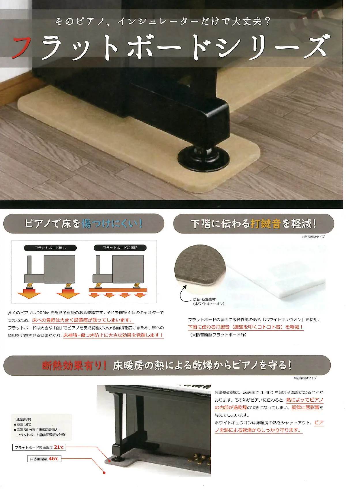 かわいいピアニストを足元からサポート 補助ペダル インシュレーターだけで大丈夫ですか? フラットボードシリーズ 音の対策 足りてますか? 防振マット 忘れていませんか?ピアノの地震対策 ピアノの地震対策